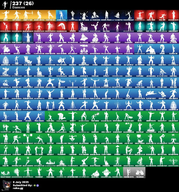 (Sprint), 1-Ball, 8-Ball Vs Scratch, Abraxascope Axe, Acesquadotas, Adira, Agent Jones, Agent Peely, Aggro, Aimbrood Axe, Air Shredder, Amatei Plush, Angel, Angler Axe, Antonia, Aphrodite, Apprentice Evie, Aquaman, Aquaman's Trident, Arctic Adeline, Armored Mace, Artemis, Artifact Axe, Ashoka Tano, Ashoka's Clone Trooper, Axe-Teal Form, Backflip Blades, Badass's Relic, Balance Board, Balloon Axe, Banana Axe, Banana Basher, Bank Shots, Barie Moves, Battery Machete, Battle Blessings, Battle Call, Battle Prep, Battle Repo - Super, Battlehawk, Beachestoonan, Bear Hug, Beastfang, Beat Core, Beatz Bunny, Beep Beep, Bell Refreshing, Bevering Point, Big Bite, Big Dill, Blackheart, Blades of Light, Blood Spreader, Bloody Detach, Blow With It, Blowin' Up, Blue Deercatcher, Blue Spark Hammer, Boardcookie, Boba Snack, Bold Scratch The Scratcher, Bolt Blades, Bonecko Stick, Bonus, Boogie, Boogie Down, Bootsin' Cats, Brat's Clawver, Breaking Waves, Breeze, Brilliant Blades, Brite Raider, Bunker Jonesy, Burn Bright, Butter Finger, Bytes, Calamity, Calculated, Calculator, Call Me, Called Shot, Camels Axe, Cameo Vs Chic, Captain Jones, Carabraty, Carbide, Card Drop, Carnage, Cassidy Quinn, Catalyst, Catflip, Cerberus, Chain Climbmare, Chainsawer, Chaos Director, Charging Up, Charlotte, Chef's Special, Choice'nit, Chop Chop, Chrome Punk, Claw & Masher, Clean Sliced, Clone Trooper, Cluck, Cluec's Stunt, Coaster, Cobra, Coin Flip, Coludd Cruncher, Comando's Boat Hook, Combat Cub, Conjuro Reaper, Coronik Axe, Coruscant Guard, Cosmic Clawers, Count It, Crack It, Crimson Slicer, Crisby's Cubile, Crown Call, Crystal Fang, Cubic Scepter, Cuddle Team Specialist, Cursed Jack Sparrow, Cyantanium Axe, Cycle Girl, Cyrielle Blade, DJ Yonder, Daddy's Claws, Dag Stand, Dagger Dance, Daigo, Daisy & Dofred, Dangerous Ice Setup, Dark Edge, Darkman Claws, Darth Maul, Darth Vader, Death & Sorrow, Deathbangers Day, Default, Defenders Horde, Demi, Demolisher's Axe, Demolition's Ax, Destiny, Diamond Sticking, Diamond Tesone, Dice Roll, Dime Knives, Dire, Disassemble, Do The Split, Doctor Doom, Doctor Slone, Doctor Strange, Dodgeracer, Dodog Treat, Don't Complain, Donatello, Doom, Doom Slayer, Doosting Ki, Double Tags, Doze-Dod, Dragon Claws, Dragon Line's, Dragon Stance, Dragon's Claw, Dragonclaw Ice, Dram's Drip, Draw Yin, Drift, Droopia, Drop Skin, Drummies, Drys, Duelist's Fork, Dumbstoollers, Dune Slicer, Duo's Deathstep, Dusk, Dusty, Dva Fever, Dwarfhand Dance, Dynamo TNTina, Earths Arrows, Edwin Bouquet, Electro Shuffle, Elite Claws, Ember, Ember Pick, Emma Frost, Emperor Palpatine, Era, Erisa, Eternal Knight, Evie, Evil Scrapaxe, Exitape Edge, Express Yourself, Extreme Verve, Fabio Sparklemane, Fable, Fade, Fang Dance, Fanning Blades, Fast Five, Feel The Force, Felina, Felina's Claw, Fending Wand, Fennix, Fish Thicc, Fist Bump, Flaky Feast, Flamenco, Flapper, Flashbacks Chains, Fletcher Kane, Flipper Scky, Flippin' Away, Flop Drop, Flux Glider, Fluxboy, Fon Blades, Foolplex, Foxfire Edge, Franco Pessim, Free Flow, Frosted Edges, Frozen Axe, Frozen Heart, Frozen Horn Blade, Fusion, Fusion Scythe, Fusion of Flame, Gale Force, Gangnam Style, Gear Specialist Maya, General Grievous, Geralt Of Rivia, Get Funky, Giddy-Up, Giga-Ocean Clam, Godzilla Evolved, Gold Brutus, Gold Midas, Golden Annihis, Golden Berthly, Golden King, Golden Scorcher, Golf Clap, Good Guy, Gotcha Headbang, Great Earthern, Groot, Grriz, Guggimon, Gum Bratner, Gumbo, Gunnar, Gwen-Step, Gwenpool, Hack & Slash, Hades, Hamfume, Hammer Axe Level 2, Hand of Lightning, Hand-Forced, Harbern Key, Harlowe, Haven, Headbang Party, Heart Chopper, Heavy's Machete, Hello Friend, Helsie, Hero Baymax, High Life, Highwire, Hipster, Hired Slayer, Holiday Boxy, Hollow's Beastess, Hoon Reaver, Hoop Master, Hope, Hope's Hammer, Hot Margot, Hot Pickers, Hula Hoochin, Hunter's Boomerang, Hunter's Reach, Huntress, Hybrid, Hypnotexes, I Declare, I Love It, I'm A Hamburger, Ice, Ice Club of Flame, Ice Flares, Ice Scepter, Ice Scout's Battle Axe, Ice Slayer Pickaxe, Ice-Dead Scraper, Icey Pick Reach, Icingding Axe, Ign1 Sign, Imani, Incredible March, Indiana Jones, Infinity's Edge 1080, Intensity, Invisible Out, It Is Finished, It's 2 You, It's Go Time!, It's Grimsbury, J.B. Chimpanski, Jab Of Dirt, Jack Sparrow, Jade, Jar Buster, Jaywalking, Jef Signals, Jennifer Walters, Joey, Josie, Joss, Jules, Jumprkets, K.O. Club, Kado Thorne, Kalax Cutter, Keep It Mello, Keisha Cross, Kendo, Keyed Up, Khaby Lame, Kiara K.O., Kick Back, Kit, Kneebreaker, Knight Conqueror, Kondor, Kor, Korra, Krisabelle, Kymera, Laminator, Lara Croft, Laser Perioded, Lennox Rose, Leo's Katana, Leonardo, Lexa, Lhog Axe, Light Slash, Lightning Launcher, Lil Split, Lil T-4 Shuttle, Lil' Longboat, Lil' Monster, Lil' Prancer, Lil' Rover, Lil' Saucer, Lkj, Locked Portal, Lockpick, Lollipopper, Lorenzo, Lost Weight Dance, Lt. Evergreen, Lt. John Llama, Lucky Lance, Lunar Charge, Lunar Defender, Lunar Glow, Lunarbarty, Lynx, Mace, Mae, Make A Seat, Malik, Mama Nana, Mancake, Mandalorian, Mandalorian's Jetpack, Mandibles Hammer, Mandrake's Design, Mangax///Salute, Mariposa, Marzo's Pollaxe, Mashed Potato, Massai, Master Key, Master's Cape, Masterduck, Mave, Mayan Technician, Mc Hammer's Dance, Mead Axe, Mech Axe, Medusa, Mega Waves, Megalo Don, Menace, Meow Skulls, Meowdas, Meowscles, Mercurobal, Mexico Claws, Michael Myers, Michelangelo, Mini Booglight, Mizuki, Molly Hatchets, Momentum Blade, Momoto's Scalpel, Montague, Moon Mystery, Moonlight's Blade, Mount Kaala, Murderous Claw, My Claws Out, Mysterio, Mystic Chiconda, Mystica, Mystique, Nezumi, Nick Fury, Nightshade, Ninja Stance UK, Nisha, Nittanas, No Eradicator, Nolan Chance, Nugdrop, Null Claws, Nyanja, OMG I Love It, Obliterate Blade, Ocean, Ol' Spiky, Omegarok, Omni Sword, One Early Morning, Onesie, Optimus Prime, Orange Justice, Orbital's Traitor, Oscar, Outlaw Butter, Outlaw Midas, Pandemonium, Pans & Claws, Paradigm (Reality-439), Paradise Riffs, Peabody, Pe