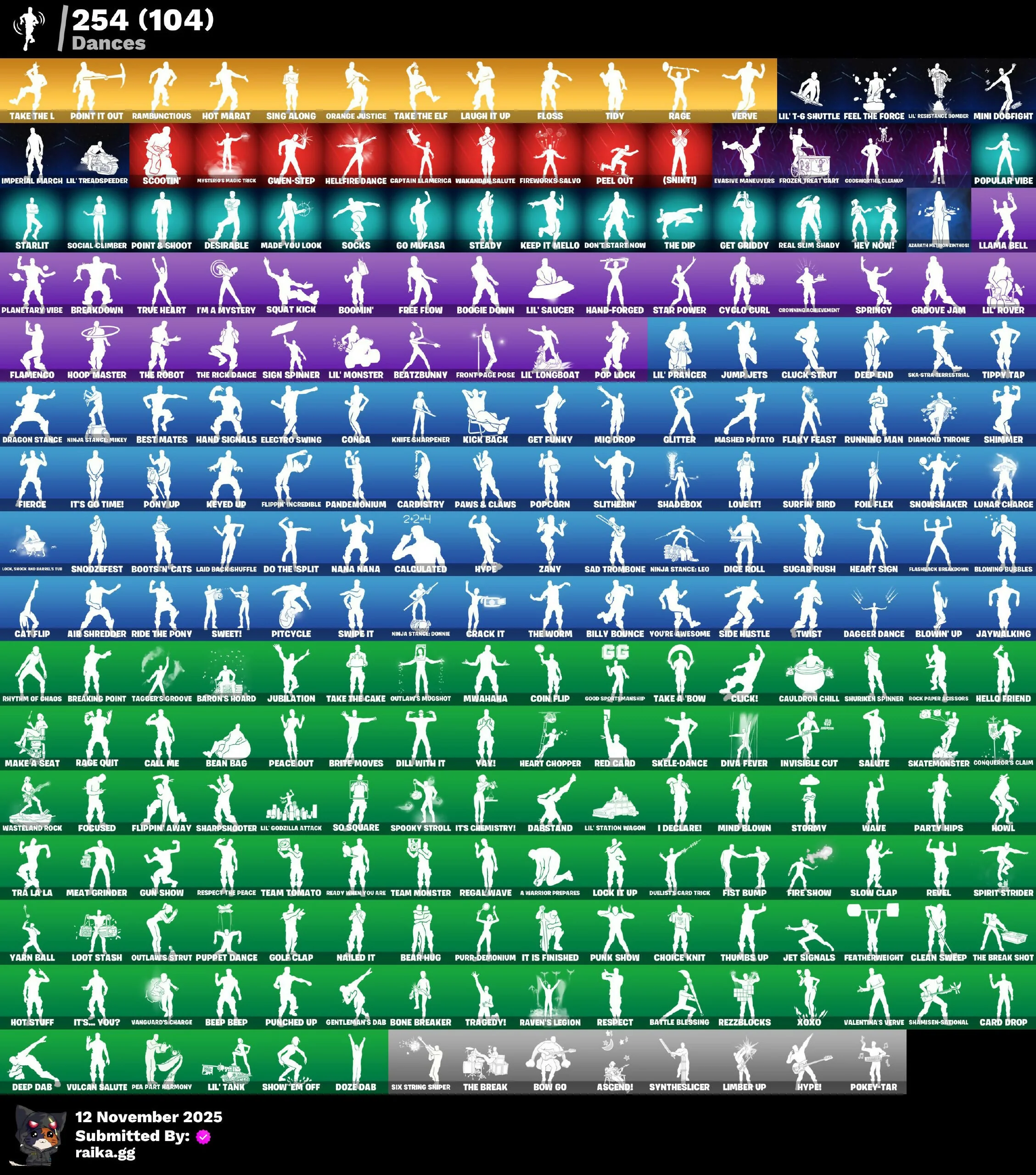 (Skint!), 1-Ball, 10 Field Flyer, 10 Orchestrator, 10 Stealth Sail, 2020 Kickflip, 8-Ball Janky, 999 Knives, A Warrior Prepares, A.I.M., AC/DC, Abominable Axe, Adira, Adira's Battle Flag, Adventure Pack, Agent Jones, Agent Peely, Air Shredder, Alpha Trophy, Altitude, Anarchists Amp, Ancestral Bloom, Angry Counter, Antenna-nator, Antonia, Apex Predator, Aphrodite, Apocalypse Shroud, Apprentice Evie, Arcana, Arcane Energy Glider, Ark, Ark Wings, Arroyo Pack, Articulated Blade Wing, Ascend!, Assault Trooper, Assaultron Blade, Astro, Astroworld Cyclone, Aura, Auto Clutch, Axe-O, Axe-Tral Form, Axecalibur, Axiom Assault Bomber, Azarath Metrion Zinthos!, B Splat, B.R.U.T.E. Gunner, Bachi, Back Board, Backlash, Backstabber, Backtracker, Backup Blades, Ballistic, Balloon Axe, Bamboo-Tana, Banana Bomber, Banana Briefcase, Bananaxe, Banner Cape, Banner's Vaultbrella, Baron's Hoard, Base Jumper, Basecamp Bag, Basic Basher, Bat Royale, Battle Blessing, Battle Bloom, Battle Hound, Battlehawk, Baymax Wings, Beach Umbrella, Beachcomber, Bean Bag, Bear Hug, Beast Boy, Beastfang, Beatzbunny, Bedside Nanner, Beep Beep, Best Mates, Big Dill, Big Haul, Billy Bounce, Birdie, Bitey, Black Knight, Black One X-Wing, Black Shield, Blackened Shield, Blackheart, Blackout Bag, Blade Raven, Blade of the Weeping Moon, Bladed Travpak, Blades of Light, Blitz 'Brella, Blitz Axe, Blitz Wings, Blowin' Up, Blowing Bubbles, Blue Squire, Bobo, Bogey Bag, Bolt, Bomb Bag, Bomb Bouquet, Bombs Away!, Bone Breaker, Bone Patrol, Bones, Boogie Down, Boomin', Boots'n' Cats, Booty Buoy, Boulder Breakers, Bounty 'Brella, Bow Go, Brain Freeze, Breakdown, Breakfast Bounty, Breaking Point, Breathless Blades, Brella, Brilliant Cutters, Brite Bomber, Brite Moves, Brite Raider, Bronzed Scimitars, Bubblin' Sludge, Bubbloon, Bullet Rider, Bunker Basher, Bunker Jonesy, Bunsen Backburner, Burgle Bag, Butcher's Knife, Butcher's Tools, Butter Robot, Cable, Cable Cloak, Cacodemon, Cactus Club, Calamity, Calculated, Call Me, Candy Axe, Captain Jones, Captain Llanerica, Captain Phasma, Captain's Glider, Carbide, Carbon, Carbon Fiber Holster, Card Drop, Cardistry, Carmine Rosso, Carnage, Carnage Cleaver, Cassidy Quinn, Castle Peaks, Catalyst, Catflip, Cauldron Chill, Cerberus, Chain's Satchel, Chainsaur, Champion P.J., Chani, Chaos Director, Chaos Double Agent, Chaotic Crawler, Charge Pack, Charlotte, Checker, Chemist's Cloudglider, Chenpool's Katanas, Chew Toy, Chill Challenger, Chloe Kim, Choice Knit, Chop Chop, Chop Dropper, Chrombrella, Chromeseed, Chuck Pack, Cinder, Clang & Basher, Classified, Claw-Chucks, Clawbox, Clawz Retro, Clean Sweep, Click!, Cliffside Soarer, Clinical Crosser, Clip Show Carry-All, Clix, Cloud Llama Board, Cloud Strike, Cluck, Cluck Strut, Clutch & Dagger, Cobra, Codename E.L.F., Codsworth's Cleanup, Coin Flip, Cold Snap, Color Crush, Combat Cue, Combat Wreath, Comet Crasher, Cometbrella, Comfy Cats, Conga, Conqueror's Axe, Conqueror's Claim, Conquest, Convergence, Cookie Cutter, Copperclaw's Time Brella, Cosmic Cleavers, Couch Titan, Covered Crusader, Crack It, Crash Test Cuddler, Crescent Shroom, Crested Cape, Crimson Crest, Crimson Wish, Crossfire, Crossrider, Crowbar, Crowning Achievement, Cruiser, Cryptic, Crystal Axe of the Masters, Crystal Fang, Crystal Llama, Crystal Smasher, Cubic Vortex, Cuddle Carvers, Cuddle Team Sierra, Cuddle Team Specialist, Cuddly Cloudcruiser, Cursed Marionette, Cyclo Curl, Dabstand, Dagger Dance, Daigo, Daigo's Claws, Dark Charger, Dark Engine, Dark Matter, Dark Symbiote, Dark Vanguard, Dark Void, Dark Voyager, Dark Wings, Darkfire Claws, Datafiber Chargepack, Dauntless Driver, Deadpool, Deadpool's Katanas, Dealer's Deck, Death Star Smasher, Deck Ducky, Declare!, Deep Dab, Deep Dive, Deep End, Demi, Demogorgon, Demonslayer Blade, Designated Hitters, Desirable, Destabilizer, Diamond Throne, Diamondclaw Picker, Dice Roll, Dill With It, Dimensional Gate, Dino Deck, Dire, Dire Flyer, Diva Fever, Dive Knives, Dj Yonder, Do The Split, Doctor Doom, Doctor Slone, Dogg Treat, Domino, Domino Pack, Don's Dominator, Don't Start Now, Donatello, Donnie's Bo Sheath, Donnie's Bo Staff, Doom Brella, Doom Chalice, Doom's Cloak, Doom's Cowl, Doombringer's Trophy, Double Agent Hard Case, Double Agent Ooze Unit, Double Agent Stripe, Double Agent Wildcard, Double Header, Double-Dribbled Boom Ballast, Downpour, Downshift, Doze Dab, Dragon Rider, Dragon Rune Lance, Dragon Stance, Dragon's Claw, Dragonheart'd 'Brella, Dread, Dreamer's Two-Shot, Dreamzy Handbag, Drift, Driver, Drome Drifter, Drummies, Duelist's Card Trick, Duelist's Foil, Duke, Dumbbell Driver, Durrr Taisho, Dusk, Dusk Knight, Dusk Wings, Dyed Breeze, Dying Light, Dynamo, Dynamo Gram-Shot, Dynamo Tintina, E.L.F. Shield, E.L.I.M., Eagle's Form, Easy Reach, Echo, Eclipse Brella, Eclipsed Edges, Eggar, Electro Fauning Blades, Electro Swing, Elegance Blade, Elegant Crowbar, Eleven, Elite Agent, Elite Servo, Ember, Ember Pick, Emma Frost, Emoticape, Enchanted Lifebloom, Endless Scroll, Enforcer, Envoy, Eon Blades, Epic Blade of Floof, Epic Swords of Wonder, Equalizer, Eternal Knight, Eternal Shield, Eva, Evasive Maneuvers, Evie, Explorer Emilie, Extermination Saw, Fabio Sparklemane, Fable, Fabled Cape, Fade, Fangs of the Blood Moon, Fashion Accident Janky, Fate, Featherweight, Feel The Force, Felina, Felina's Claw, Feline Dagger, Feline Fun, Festival Phadera, Field Flyer, Fiendish Wand, Fierce, Finesse Finisher, Fire Show, Fireworks Salvo, Fish Thicc, Fishstick Janky, Fishy Flier, Fist Bump, Fist Of Doom, Flaky Feast, Flambago, Flamenco, Flapjack Flyer, Flashback Breakdown, Flatfoot, Flawless, Fletcher Kane, Fletcher's Cane, Flight Risk, Flippin' Away, Flippin' Incredible, Floss, Fluffy-Dubbs Fly Challenge, Flux Silvera, Focus, Focused, Foil Flex, Fork Knife, Fortilla Flier, Foundational 'Brella, Foundations Mantle, Founder's Plasma Spike, Founders Glider, Founders Umbrella, Fowl Mantle, Free Flow, Frequency Flyer, Frontpage Pose, Frostburn, Frosted F