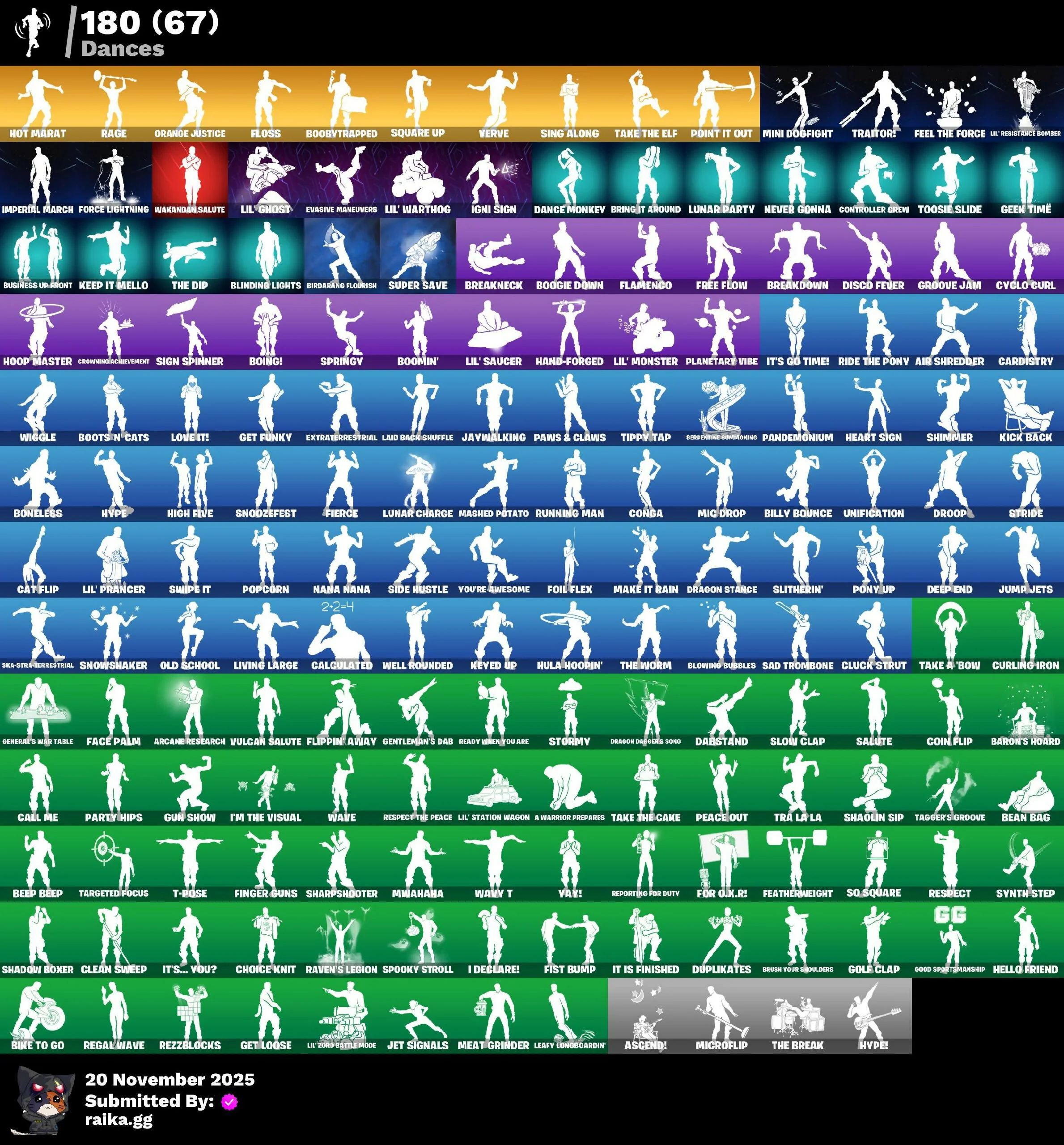 10 Field Flyer, 10 Stealth Sail, 2020 Kickflip, 8-Ball Janky, 8-Ball vs Scratch, A Warrior Prepares, A.I.M., Abominable Axe, Ac/Dc, Adira's Battle Flag, Adventure Pack, Agent Jones, Agent Patch, Agent Peely, Air Shredder, Alpha Trophy, Altitude, Ancestral Bloom, Angler Axes, Anniversary Axe, Antidote, Apex Predator, Apprentice Evie, Aquaman's Trident, Arcana, Arcane Energy Glider, Arcane Research, Arctic Adeline, Arctic Assassin, Arroyo Pack, Ascend!, Astroworld Cyclone, Atmosphere, Aura, Avengers Quinjet, AxEhammer, Axecalibur, B Splat, Back Bloom, Back Board, Back Mounted Turbo Timer, Backtracker, Bad Joke, Ball Bling, Balloon Axe, Bamboo Patch, Bamboo-Tana, Banana Bomber, Banana Briefcase, Bananaxe, Bank Shots, Banner Cape, Banner Shield, Baron's Hoard, Base Jumper, Basecamp Bag, Basic Basher, Battle Bloom, Battle Gamer Mae, Battlehawk, Beach Umbrella, Beachcomber, Bean Bag, Bear Brained, Beastfang, Bedside Nanner, Beep Beep, Big Haul, Bike To Go, Billy Bounce, Birdarang Flourish, Birdie, Birthday Cake, Bitter Sweets, Black Knight, Black One X-Wing, Black Shield, Blackened Shield, Blackheart, Blade Bag, Blade Of The Hanging Moor, Blade Raven, Bladed Travpak, Blaze, Blinding Lights, Blinky Fugu Flail, Blitz 'Brella, Blitz Axe, Blitz Wings, Blowing Bubbles, Blue Shift, Blue Squire, Blue Streak, Blue Striker, Blue Team Leader, Blue Viper, Blustery Bag, Board Breaker, Bobo, Boing!, Bombs Away!, Bone Patrol, Boneless, Boobytrapped, Boogie Down, Boomin', Boots 'N' Cats, Bootstraps, Booty Buoy, Boulder Breakers, Bounty 'Brella, Boxy, Brave Bag, Breakdown, Breakfast Bounty, Breakneck, Breathless Blades, Brella, Bring It Around, Bronzed Scimitars, Brush Your Shoulders, Brutus, Bubbloon, Bullet Rider, Bullseye, Bunker Basher, Bunker Jonesy, Bunsen Backburner, Business Up Front, Butcher's Knife, Butcher's Tools, Cactus Club, Calamity, Calculated, Caliper, Call Me, Cameo vs Chic, Carbide, Carbon Commando, Carbon Pack, Cardistry, Castaway Jonesy, Cat Flip, Catalyst, Catwing, Centurion, Centurion Edge, Chain's Satchel, Chainsaur, Chani, Chaos Agent, Chaos Double Agent, Charge Pack, Charlotte, Cheer Bag, Cheer Bolt, Chemist's Cloudglider, Chill-Axe, Chillest Vibe Rider, Chitauri Chariot, Choice Knit, Chop Chop, Chop Dropper, Chrome Punk, Chromeseed, Chun-Li, Cinder, Classified, Claw-Chucks, Clawz Retro, Clean Sweep, Cliffside Soarer, Cluck, Cluck Strut, Clutch, Cobra, Coin Flip, Cold Front, Color Guard, Comet Crasher, Comfy Cats, Conga, Conquest, Contender, Controller, Controller Crew, Convergence, Cookie Cutter, Coral Cruiser, Cosmic Cleavers, Covered Crusader, Cozy Conch, Crazy Eight, Crescent Shroom, Crimson Crest, Crimson Scythe, Crimson Wish, Crossfire, Crowbar, Crowning Achievement, Cruiser, Crystal, Crystal Axe Of The Masters, Crystal Fang, Crystal Llama, Crystal Smasher, Cuddle Carvers, Cuddly Cloudcruiser, Curling Iron, Curse Buster, Cursed Eagleshield, Cursed Marionette, Cvmitar, Cyclo Curl, DJ Yonder, Dabstand, Daily Flight, Dance Monkey, Dark Axe, Dark Charger, Dark Engine, Dark Jonesy, Dark Power Chord, Dark Red Knight, Dark Shield, Dark Six String, Dark Strikers, Dark Wild Card, Darkfire Claws, De-Rezz De-Stroyer, Deadpool, Deadpool's Katanas, Dealer's Deck, Death Metal Scythe, Death Star 'Brella, Death Star Smasher, Deep Dive, Deep End, Deimos, Demi, Demonslayer Blade, Desert Dominator, Dino Deck, Dino Megazord, Dire, Dire Flyer, Disco Brawl, Disco Fever, Dive Knives, Dizzie, Doctor Doom, Doctor Slone, Doom Chalice, Doom's Cowl, Double Agent Ooze Unit, Double Agent Rush, Double Agent Stripe, Double Agent Wild Case, Double Agent Wildcard, Downpour, Downshift, Dragon Dagger, Dragon Daggers Song, Dragon Stance, Dragon's Claw, Dragoncrest, Dread, Dreamer's Two-Shot, Drift, Driver, Droop, Drummies, Dry Bag, Dual Kama, Dummy, Dupli-Kate, Duplicating Batons, Duplikates, Dusk, Dusk Knight, Dusk Wings, Dying Light, Dynamic Dribbler, Dynamo, Dynamo Grav-Suit, E.L.I.M., Eagle's Form, Eggar, Electro Pairing Blades, Electro-Pincers, Elegant Crowbar, Elite Cleat, Elite Servo, Ember, Emperor Palpatine, Enchanted Lifebloom, Endless Scroll, Energy Sword, Enforcer, Eon Blades, Epic Sword Of Might, Epic Swords Of Wonder, Equalizer, Eternal Knight, Eternal Shield, Eternal Voyager, Eva, Evasive Maneuvers, Extermination Saw, Extra Round, Extraterrestrial, FNCS Fighter, Fa-La-La-Llama, Fable, Fabled Cape, Face Palm, Fade, Fang Of The Blood Moon, Fang Saws, Fashion Accident Janky, Featherweight, Feel The Force, Feline Fun, Field Flyer, Fierce, Finger Guns, Firestarter, Fishstick, Fishstick Janky, Fishy Flier, Fist Bump, Fixer, Flamenco, Flanders Hip-Hopley-Hoe, Flapjack Flyer, Flappy, Flawless, Flip Flyer, Flippin' Away, Floss, Flux Silvera, Foil Flex, For O.K.K. R!, Force Lightning, Fortilla Flier, Foundation's Plasma Spurs, Foundational 'Brella, Founder's Glider, Founder's Umbrella, Fox Drifter, Free Flow, Freezing Point, Frequency Flyer, Frost Squad, Frostbite, Frosted Frets, Frosty Globes, Frozen Axe, Frozen Shroud, Fuel Rod And Tongs, Fusion, Fusion Coil, Fusion Orb, Fusion Scythe, Future Relic Scythe, Galactic Pack, Galactic Ranker, Galaxy Scout, Gale Force, Gallant Gear, Gameplan, Gathering Storm, Gear Specialist Maya, Geek Time, General Grievous, General's War Table, Gentleman's Dab, Geralt of Rivia, Get Down!, Get Funky, Get Loose, Ghoul Trooper, Giddy Gunner, Giddy-Up, Gilded Morphic Blades, Gilded Scepter, Ginger Gunner, Gingersbread Raider, Gingersled, Gli-Dar 3000, Glidurrr, Glimmering Heart, Glorious Giftblade, Go Bag, Godzilla's Exo-Spine, Gold Dagger Pack, Gold Midas, Gold Token, Golden King, Golf Clap, Good Sportsmanship, Goodie Bag, Green Ranger, Grimoire, Grind, Grind Bag, Grizzly Keys, Groot, Groot's Sap Axes, Groove Jam, Guggimon, Guiding Glow, Gum Brawler, Gumbo, Gummy Sack, Gun Show, Gunn-Brella, Gwenpool's Katanas, Hack & Smash, Hadean Gate, Hammers Of Justice, Hand Of Lightning, Hand-Forged, Har-Har-Har!, Harley Hitter, Harlowe, Harmonic Axes, Hatch Pack, Haven, Haylee Skye, Heart Si